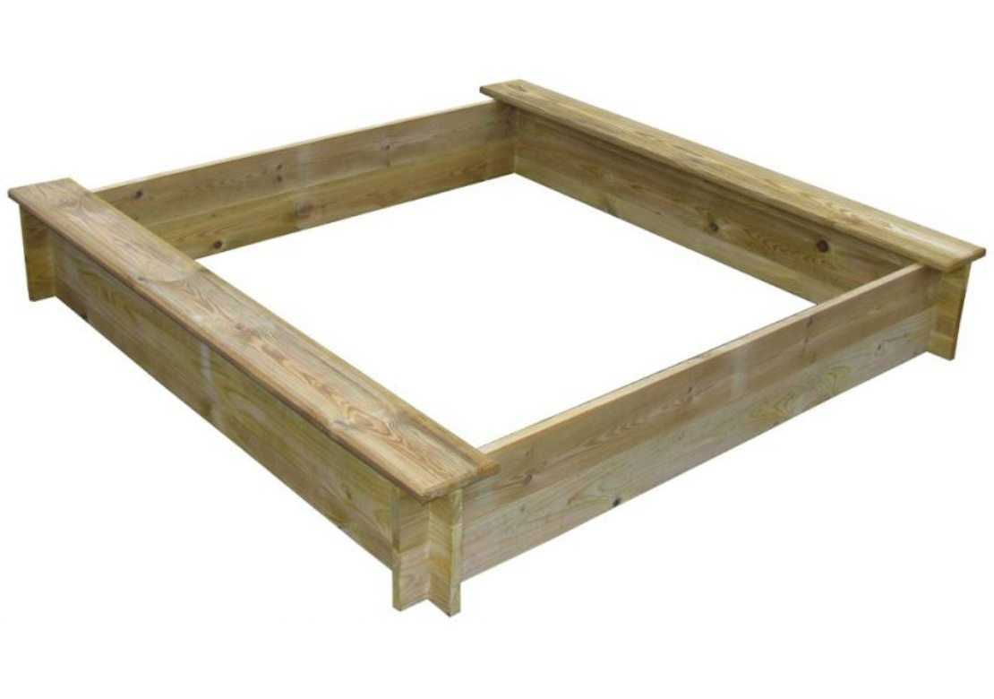 Dřevěné čtyřhranné pískoviště o rozměrech 120 x 120 cm je ošetřeno hloubkovou impregnací KDI, neboli tzv. "zelenou impregnací".